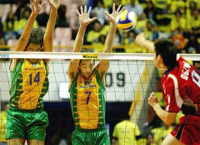 O jogador pode rebater a bola para que ela passe para o campo adversário sendo permitido dar três toques na bola antes que ela passe, sempre alternando os jogadores que dão os toques.